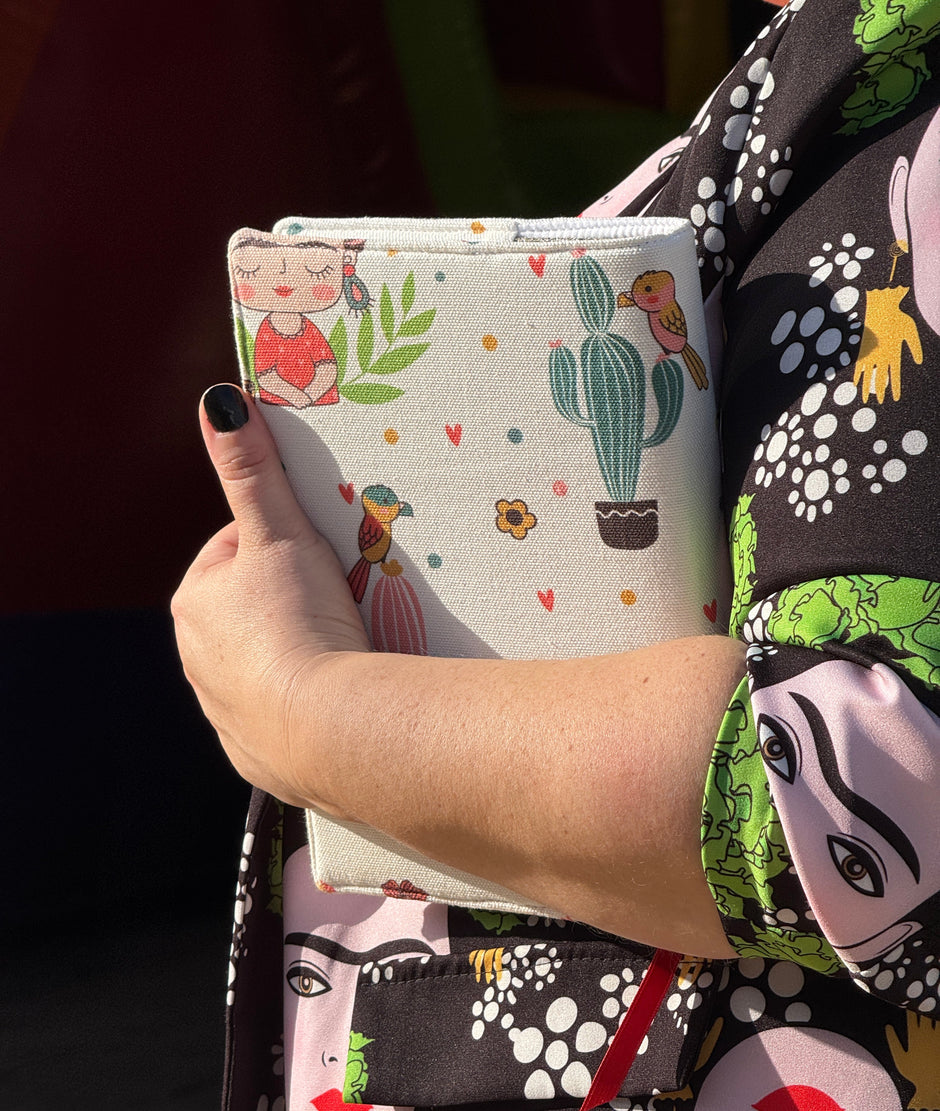 Mide el alto, ancho y grosor exterior del libro y consulta la tabla de tallas.